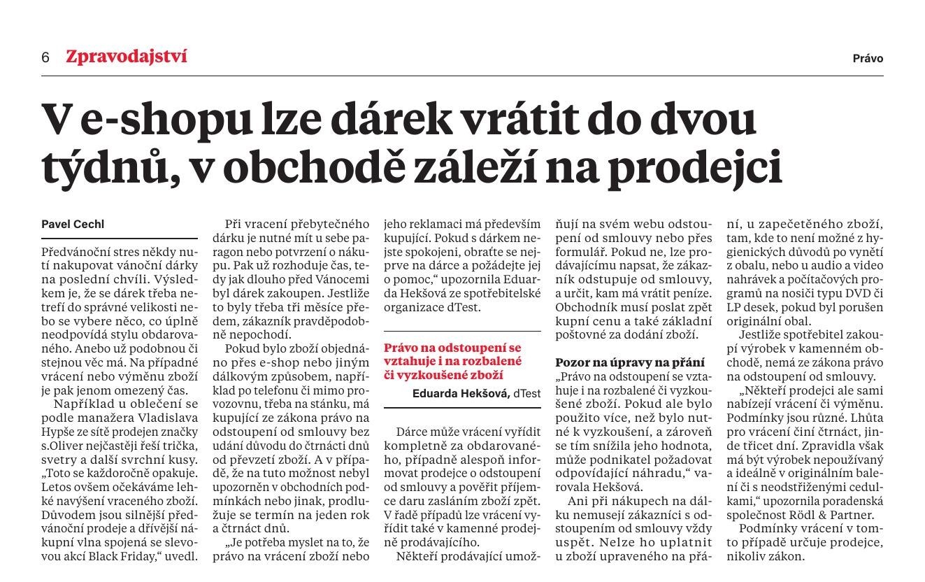 V e-shopu lze dárek vrátit do dvou týdnů, v obchodě záleží na prodejci